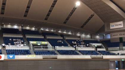 午前中の頑張りをお互いに讃えながら、観客席でお昼ご飯です。
