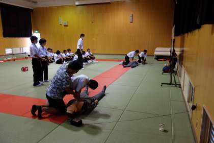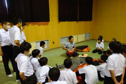 生徒の皆さんは、とても真剣に取り組み、心肺蘇生法、AEDの使い方、救助活動の連携を勉強しました。