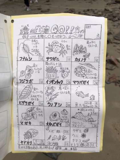 理科の先生手作りの磯の生物GO!!をみんなで楽しみました。