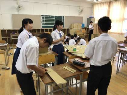 他の教室では、背景や大道具、小道具の作成も進んでいます。