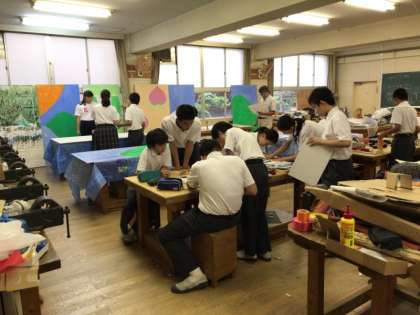こちらの部屋では、背景や衣装づくりが進んでいます。