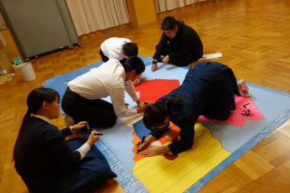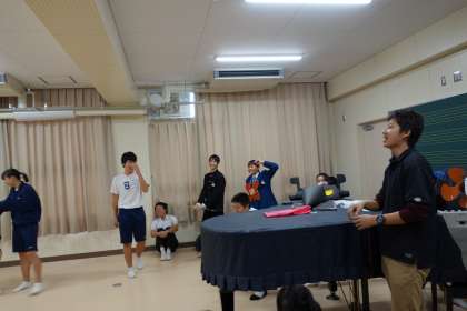 リハーサルを待っている間も、劇の練習に励んでいました。