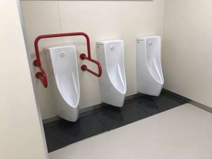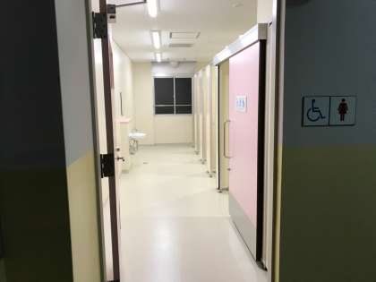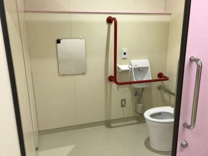 女子トイレは様式が増え、また、男女とも障がいのある方が使用できる大きな個室も全階につきました。