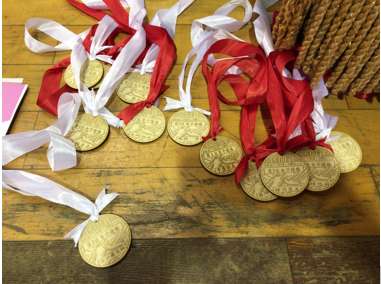 各区間賞は学校で作った特別製のメダルです。