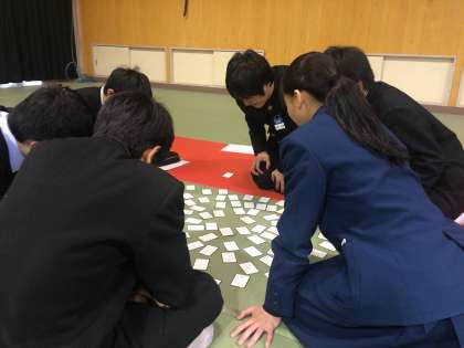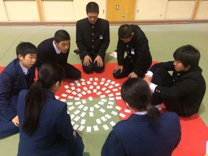 2年生で百人一首大会が開かれました。昨年度も開催しましたが、みんなの集中力の高さ、切り替えの速さに驚きました。
