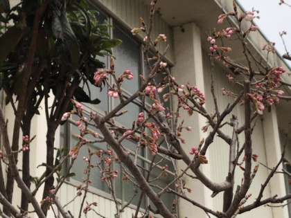季節的には梅の季節ではありますが、本校には早咲きの桜があります。