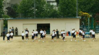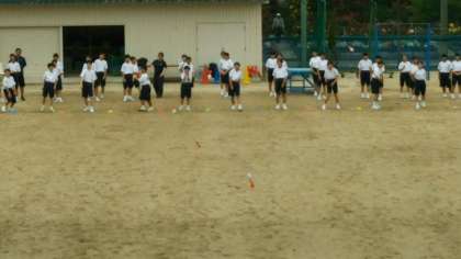 的場コーチ(アジア選手権やり投げ日本代表)の指導で「エイ・ヤー」と「あれれ?」と大騒ぎで羽根つきボールを投げました。