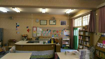 図書室の内部です。6月までには小学校用の新図書室が完成します。