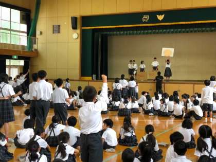 今週の児童集会は、じゃんけん大会です。集会委員とじゃんけんをして最後まで勝ち残ったのは、1年生の男の子でした。
