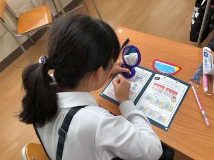 5年生が歯みがき大会の取り組みに参加しました。健康な歯ぐきと歯肉炎の歯ぐきとの違いを学習してから鏡を使って自分の歯ぐきをじっくり観察しました。