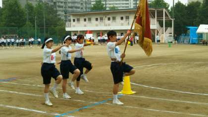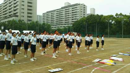少し雨が」降ってきましたが、生徒はものともせず行進し、開会式、準備体操を行いました。