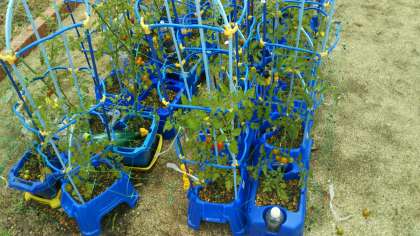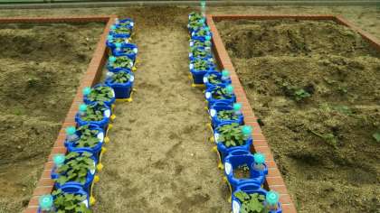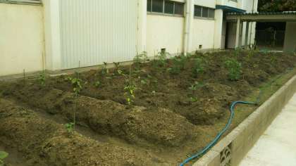 1年の朝顔・2年のトマト・中学校技術研究部のアスパラなど元気に育っています。