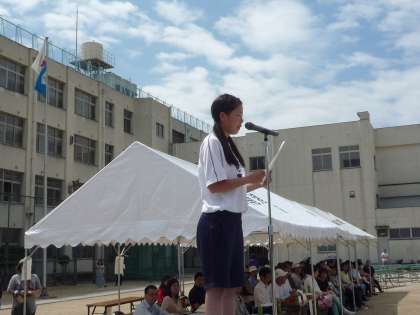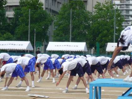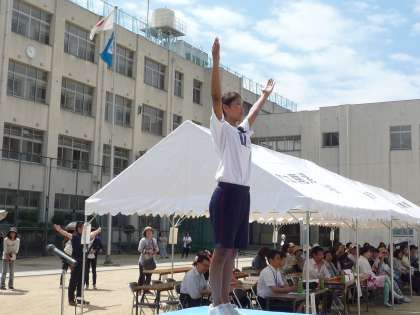 競技場の注意と準備体操(ラジオ体操第1)もしっかりできていました。