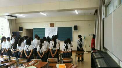 5年の音楽の授業の様子です。5,6年は中学校の教員が指導をしています。