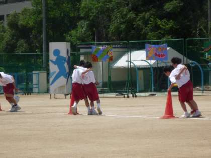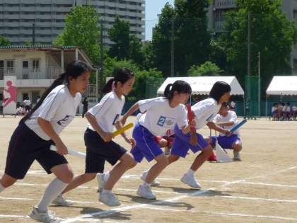 「縦割り選抜2人3脚リレー」、「縦割り選抜スウェーデンリレー」、「400mリレー」風景です。