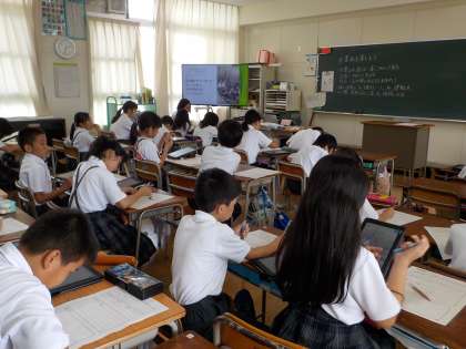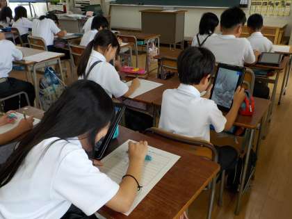 タブレットを使い、作品を細部まで拡大しながらじっくり見ました。