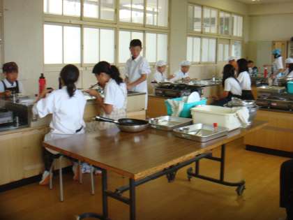 野菜を切ったり、フライパンでいためたり、楽しく実習することができました。