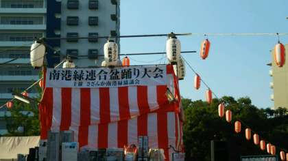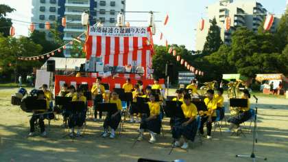 7月15日緑地域の盆踊り大会で吹奏楽部が演奏しました。