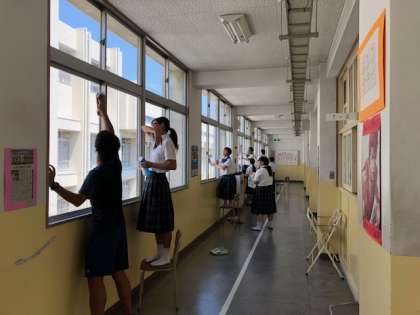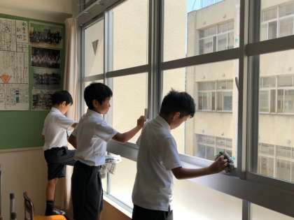 1学期使った教室や廊下をていねいに掃除しました。いつもはしない所もしっかりときれいにに掃除しました。