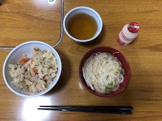 宿舎でいただく最後の食事です。