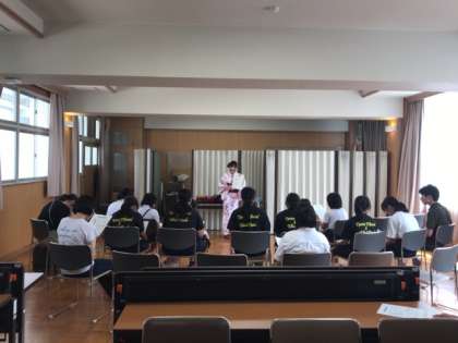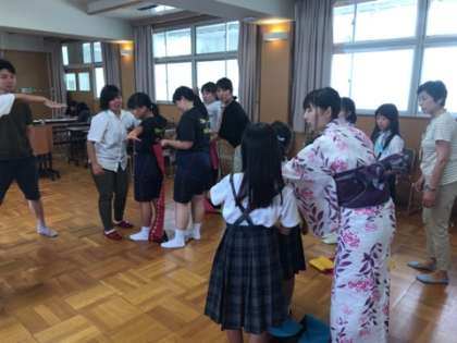 この日は元気アップの皆さんの取り組みで浴衣着付け学習を行いました。