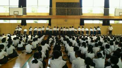 8月27日始業式がありました。一貫校校歌を歌い、クラブの表彰、有堀先生の紹介(育休より復帰)、校長先生のお話、近藤先生より生活指導の話、社会を明るくする運動の作文・標語の表彰の紹介をしました。さて本日より2学期が始まります。2学期は様々な行事が盛りだくさんですので、色々とご協力よろしくお願いします。