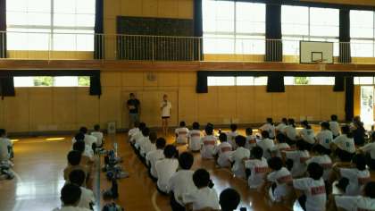 第一回水泳大会(咲洲みなみ小中一貫校)が7年から9年合同で行われました。中学生全員での初の大会になりました。まずは体育館で開会式を行いました。
