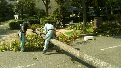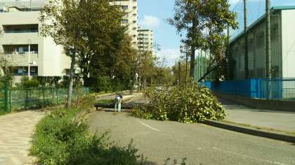 本校の管理作業員で学校周りの倒れて通行の邪魔になっている樹木を伐採しどけました。