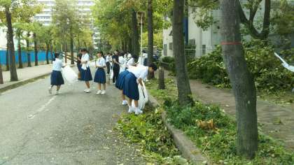 地域に大きな地震や災害が起きた場合は中学生の働きが重要です。今回の台風による残骸の片づけを行いました。