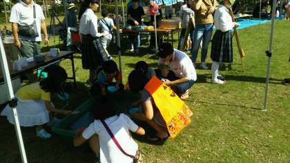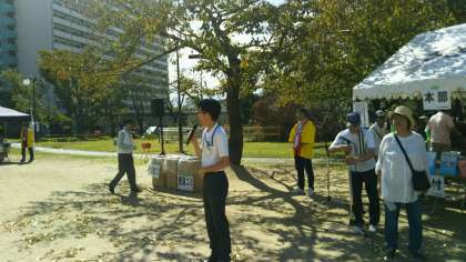 天気がよく、非常に暑い中緑フェスタ「みんなの祭り」が行われました。本校からも2名の生徒がお手伝いに来てくれました。
