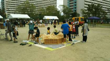 天気がよく、非常に暑い中緑フェスタ「みんなの祭り」が行われました。本校からも2名の生徒がお手伝いに来てくれました。