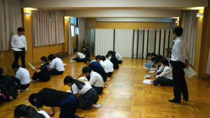 27日の防災訓練の各棟のリーダーの打ち合わせを教頭先生中心に行いました。