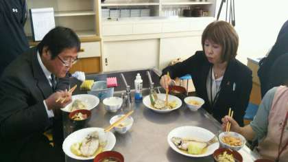 「浪速割烹 喜川」の上野修 氏による講義と実演を行いました。上野氏をはじめ喜川の皆様ありがとうございました。校長先生も試食しました。