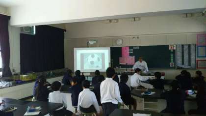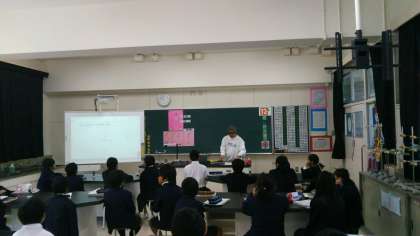 4年の理科の授業は専科です。寺田先生の授業の風景です。理科室で行っています。