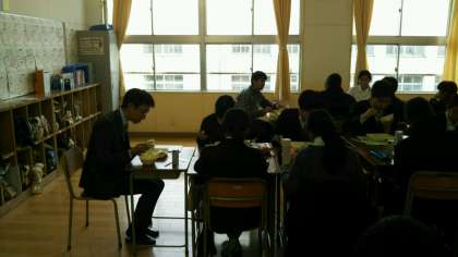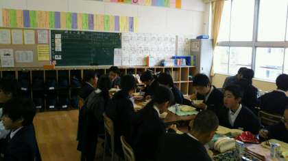 7年で区長の西原さんが給食を一緒に食べていただきました。