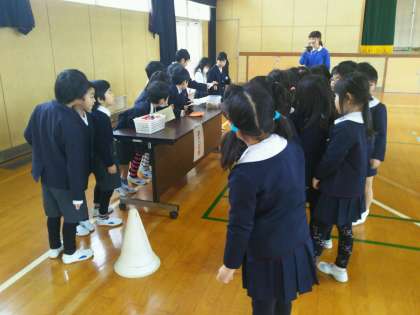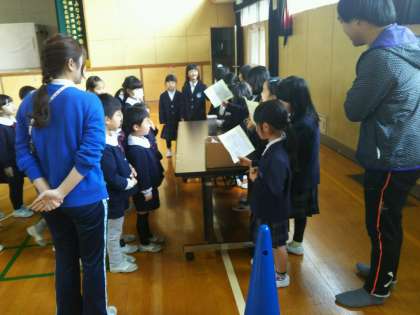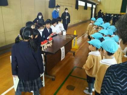 昔遊びを教えます。「みんなこうするんだよ」と少しお兄ちゃん、お姉ちゃんになりました。