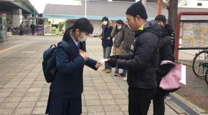 出発の時に担任の先生からカイロと手紙を渡しました。
