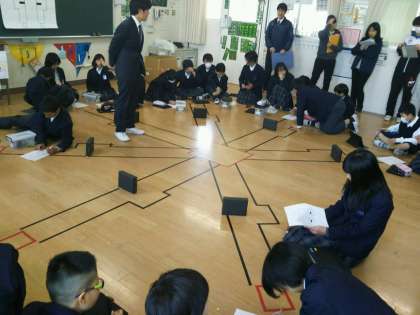 6年1組で伊藤先生のプログラミングの校内公開授業を行いました。先生方も熱心に見学しました。