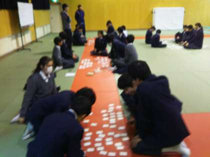 百人一首大会を行いました。時間の経過とともに盛り上がりました。
