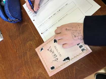 ビブリオバトルとは、それぞれがおすすめの本を持ちより、その本の魅力を語り合う戦いのことです。今回はワークシートを使ってビブリオバトルの準備をしています。
