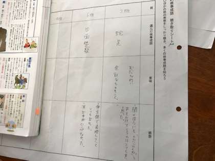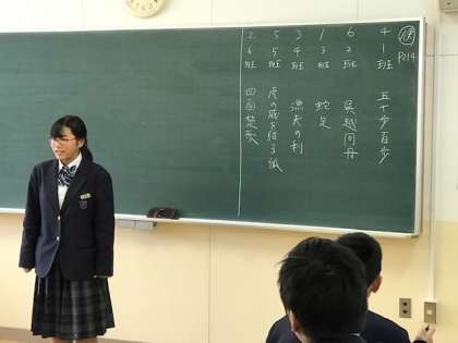 「漁夫の利」「四面楚歌」などの故事成語の説明を班ごとに寸劇で発表しました。楽しい発表でした。