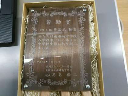 皆勤賞や体育館の準備も整いました。