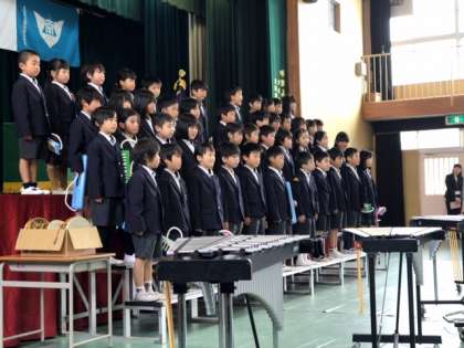 本日、一貫校として2回目の入学式が実施されました。1年生(小学校1年生)、7年生(中学校1年生)が一緒に、入学を祝いました。