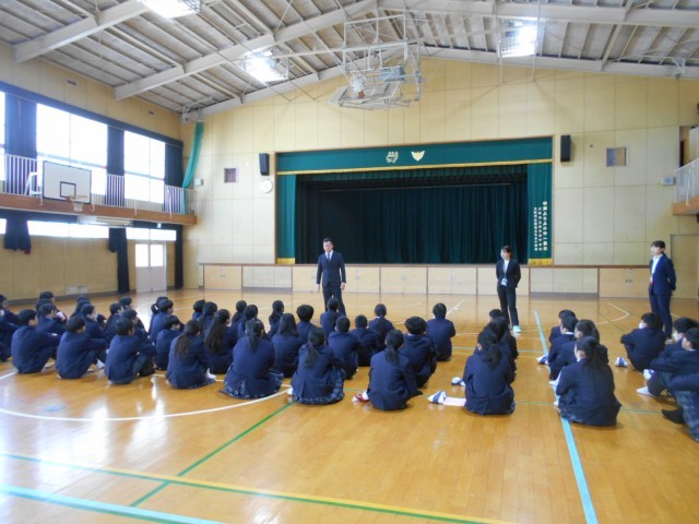 落ち着いた雰囲気の中、在校生の生徒会代表から歓迎の言葉、