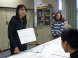 教師養成講座の受講生が、校長先生の指導のもとで、1年生読み物資料『バスと赤ちゃん...