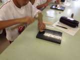クラフト(革細工)、地理、化学の体験授業です。
