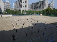 小学校では5年生が体育でジャベボール投げに取り組んでいました。正しいフォームで投...