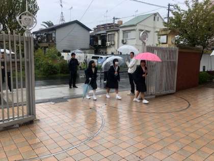 雨にもまけず元気にあいさつ