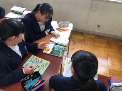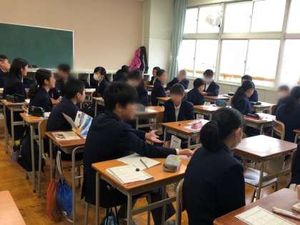 理科の授業の様子です。「主体的・対話的で深い学び」の視点から「生き物とロボットの違いは何?」という問いに対して話し合いを行いました。振り返りシートには、今月の目標と、今日の授業の感想を書き込みました。