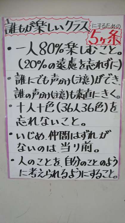 誰もが安心・安全に、自分の居場所のある学級・学年を目指して、2年生の学年主任の先生がこのような掲示をしました。